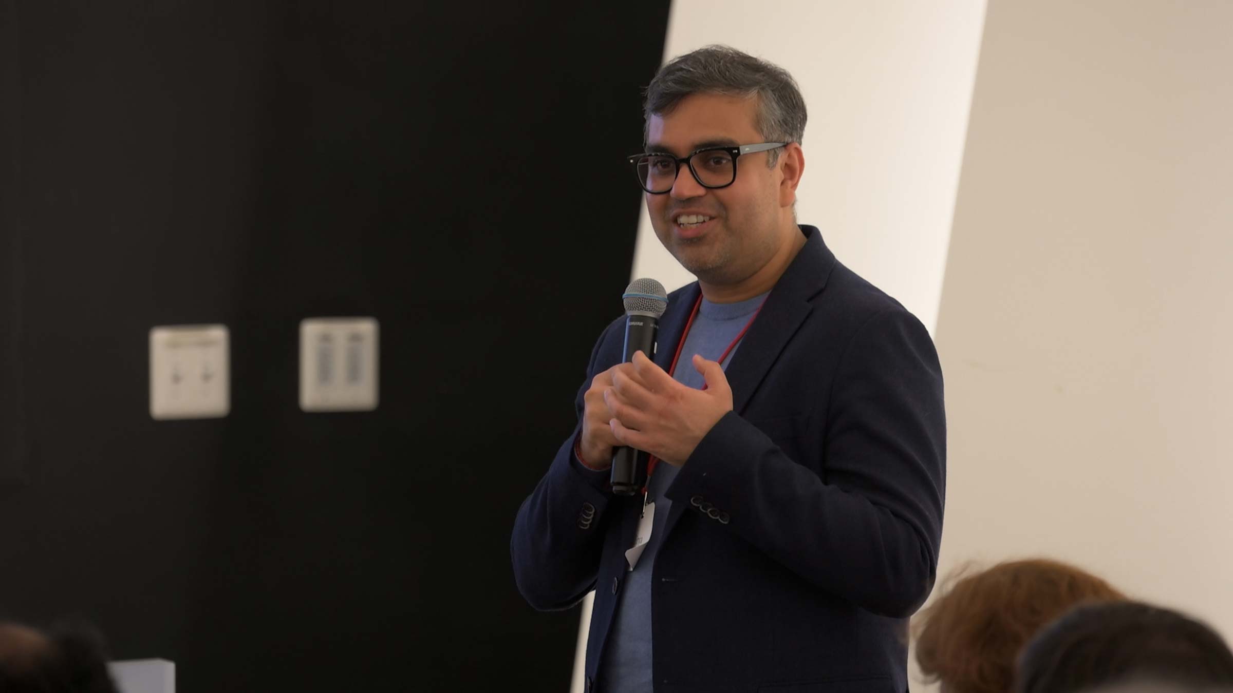 Photo: Aditya Vashistha kicks off the 2025 LLMs And Society Thought Summit.